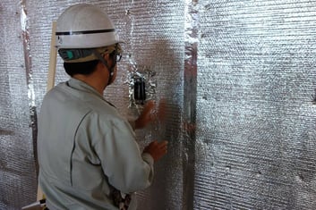 遮熱システムはこれまでの断熱材では成しえなかった輻射熱をほとんどカットし、魔法瓶の様な室内環境を創ることが出来る画期的な施工システムです。